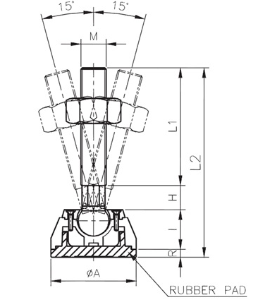L1 | L2 | H | I | A | R | M | Bolt & Nut | Cup | Pad |