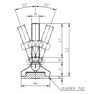 L1 | L2 | H | I | A | R | M | Bolt & Nut | Cup | Pad | ||||